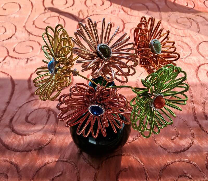 Die Drahtblumen werden ohne Grün und Vase angeboten.